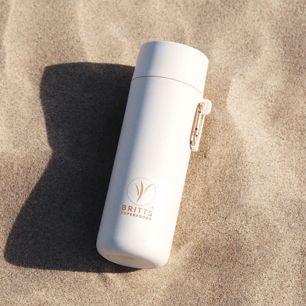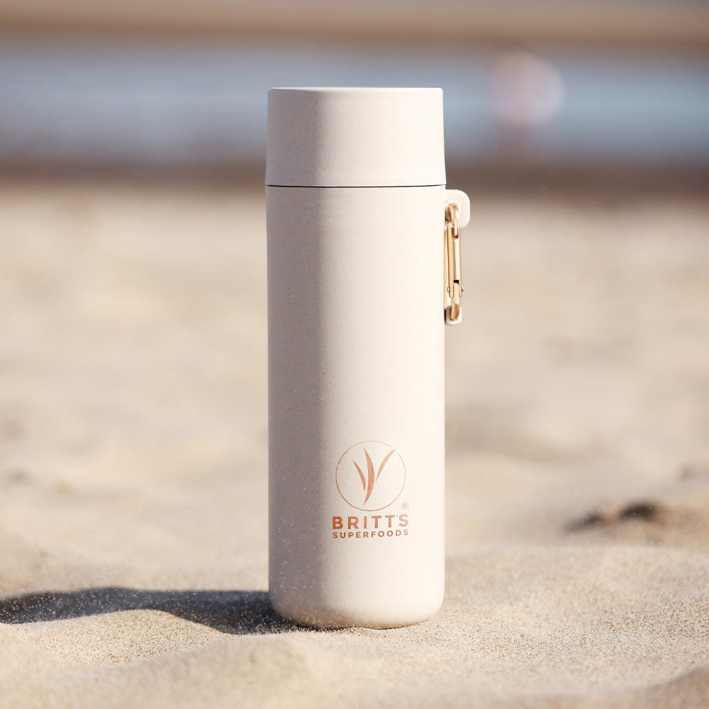 Elevate your hydration with the first-ever Britt's Superfood drinking bottle in partnership with S'Wheat. Our Reusable Plant-Based Bottle is crafted from renewable wheat-based materials. Say goodbye to single-use plastics and hello to a sustainable future with a bottle that makes a statement.
